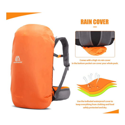 CarryQuest® - 60L - Hiking Backpack - Rucksack - Hiking - Waterproof - Durable - Polyester - Orange Lees meer