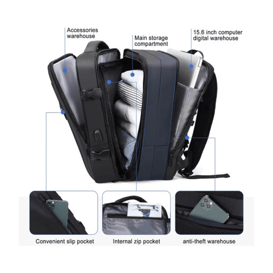 CarryQuest® - Men's Travel Backpack - 50L Capacity + USB - Laptop Backpack - Black Lees meer