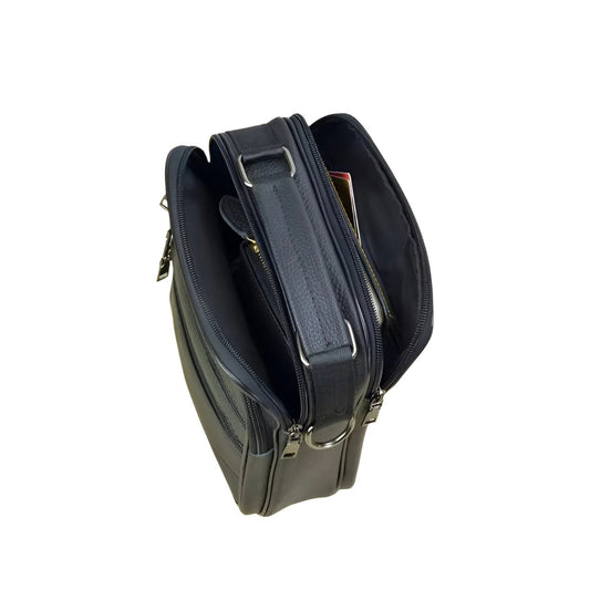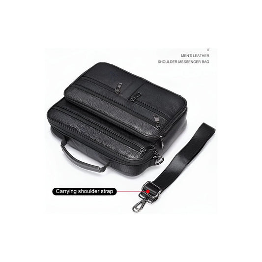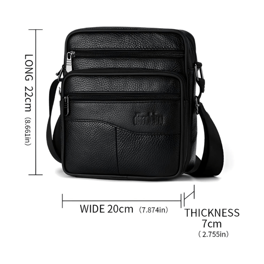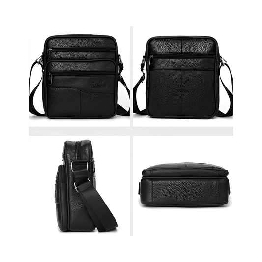 CarryQuest® - Men's Leather Shoulder Bag - Handbags - Black Lees meer