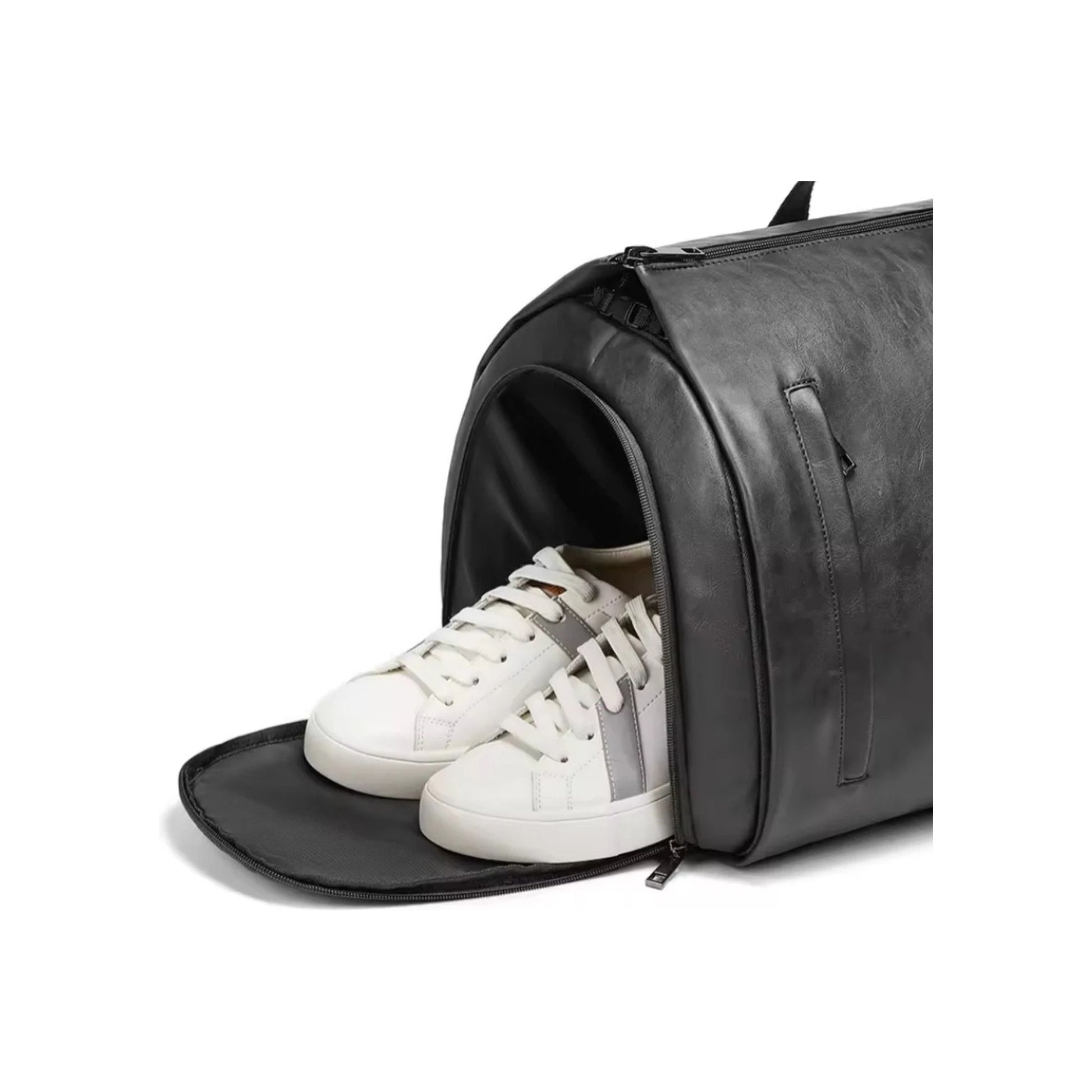 Our bag is made of high-quality leather and polyester, bringing durability and style together. The material protects your clothes during travel, while the elegant design adds a touch of luxury to your travel gear.