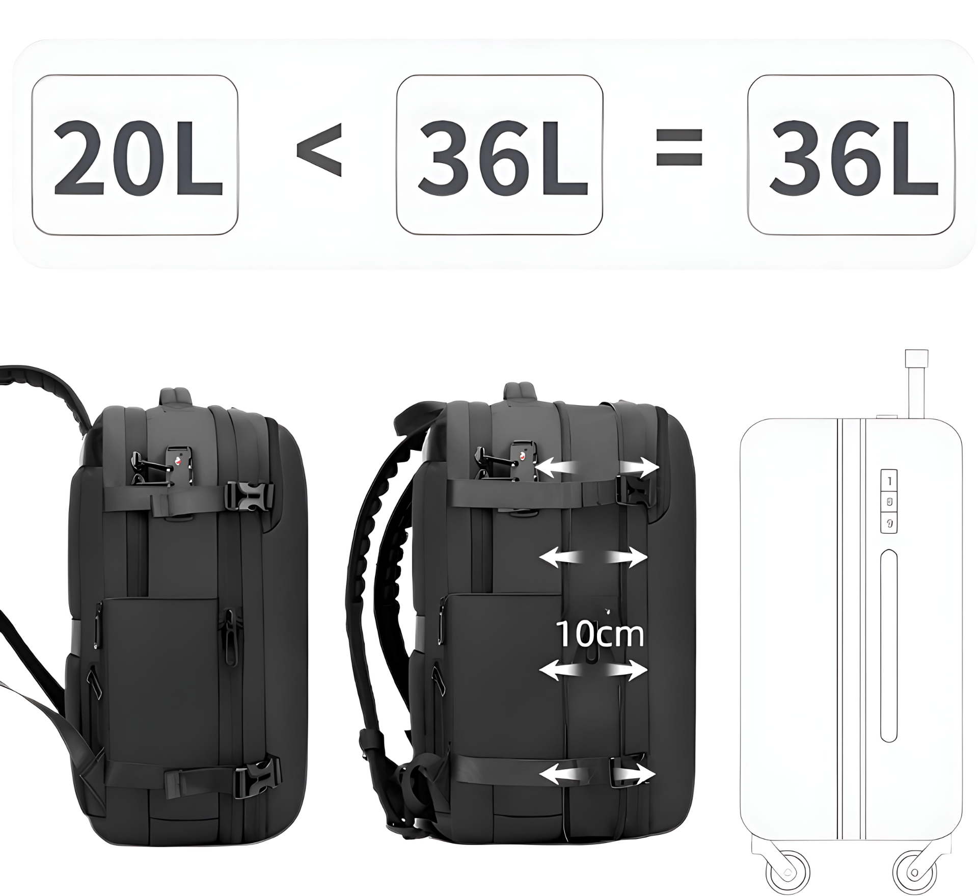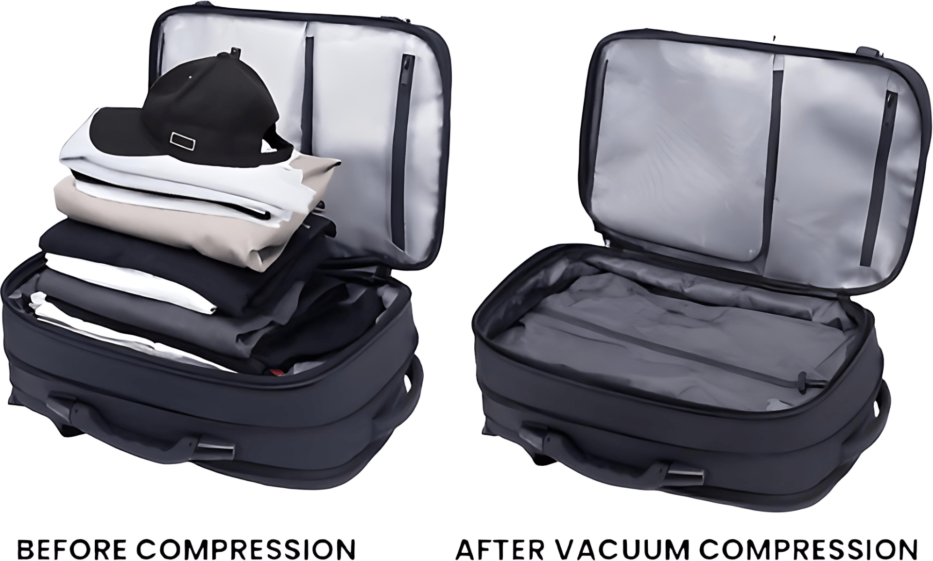 - Vacuümcompressiefunctie: Met het unieke vacuümsysteem kun je de rugzak eenvoudig comprimeren wanneer je minder ruimte nodig hebt. Dit maakt het ideaal voor krappe opbergsituaties of als je licht wilt inpakken voor een weekendje weg.
