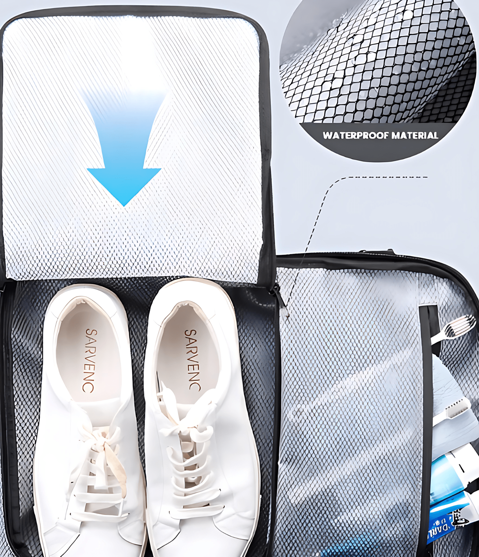 - Droog- en Natte Scheiding: Met speciale compartimenten voor droge en natte items blijft alles georganiseerd en fris. Geen zorgen meer over natte kleding of lekkende flessen!