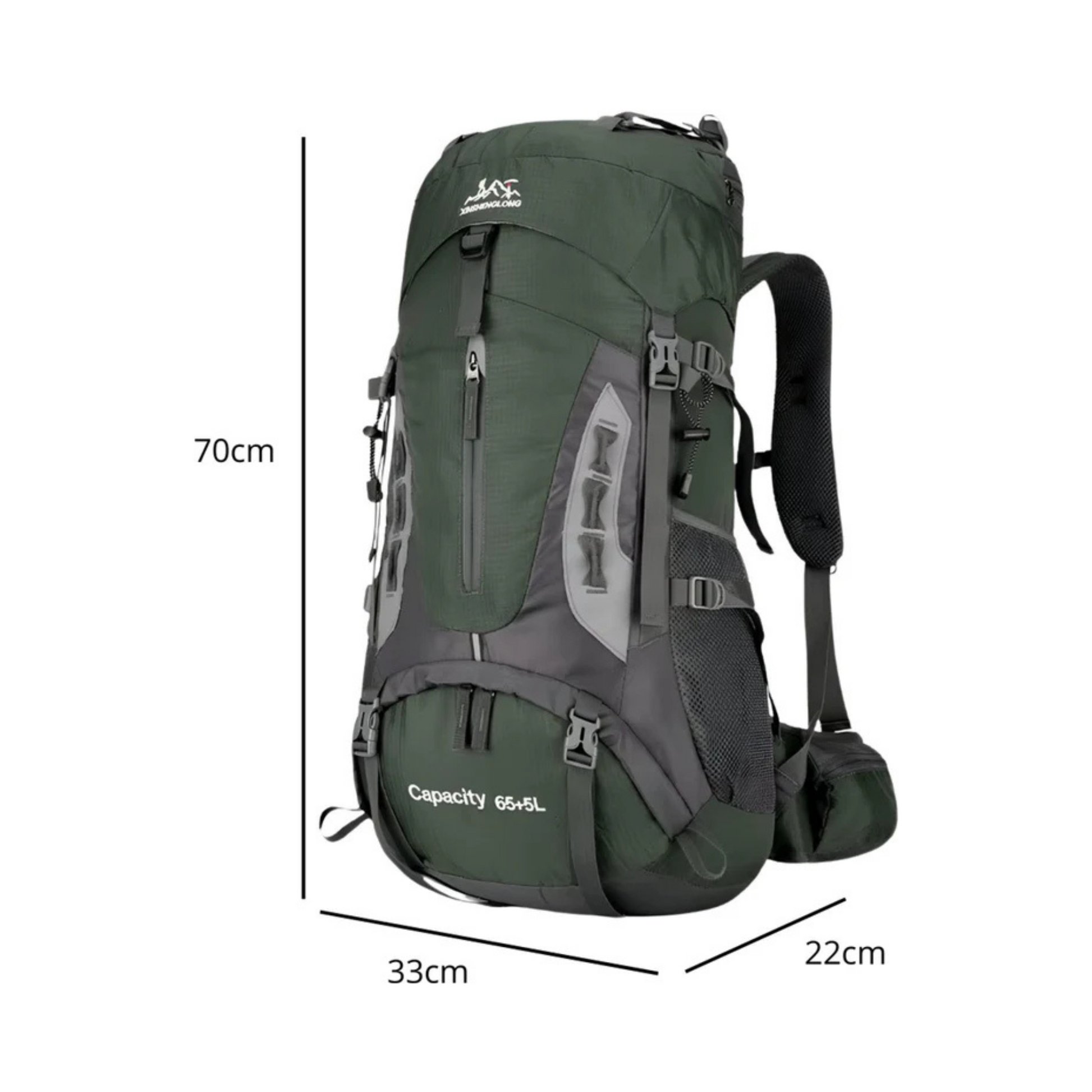 Ga goed voorbereid op avontuur met deze ruime en comfortabele 70L rugzak. Ideaal voor kamperen, wandelen en reizen!